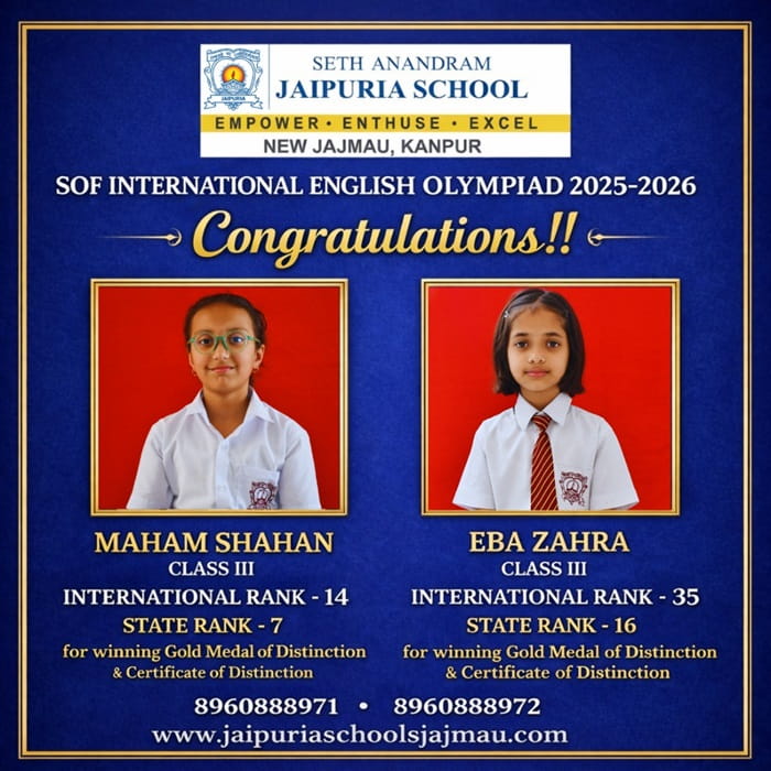 We, at Seth Anandram Jaipuria School, New Jajmau, are committed to our motto ‘Empower, Enthuse and Excel’ in providing quality education and teaching every child the necessary values to guide him/her through the journey of life. The school endows education for LIFE! Our prime mission is to create opportunities through a stimulating, safe, collaborative, and supportive environment that help students in attaining personal mastery, team spirit, and academic excellence.