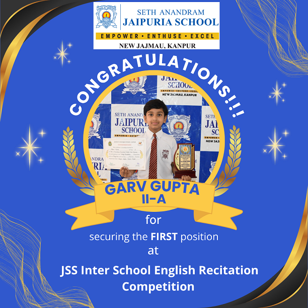 Proud Moment Unlocked! Our little wordsmith, Garv Gupta (Class II), has brought glory to the school by clinching the FIRST Position in the (Jaagrat Sahodaya Schools) JSS Inter-School English Recitation Competition, standing out among several prominent participating schools!  With impeccable expression, flawless modulation, and a voice full of confidence, Garv didn’t...